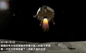 بعد رحلة لمدة 26 يوما كاملة، الساعة 10:26 في 3 يناير 2019، "تشانغ E IV" في الجزء الخلفي من النجاح القمر جنوب القطب - ايتكين حوض الهبوط، وتحقيق هبوط ناعم كاشف البشري لأول مرة على ظهر القمر، و من خلال نجم التتابع "جسر الجسر" ، انتقل إلى أول صورة عن قرب للقمر في العالم.