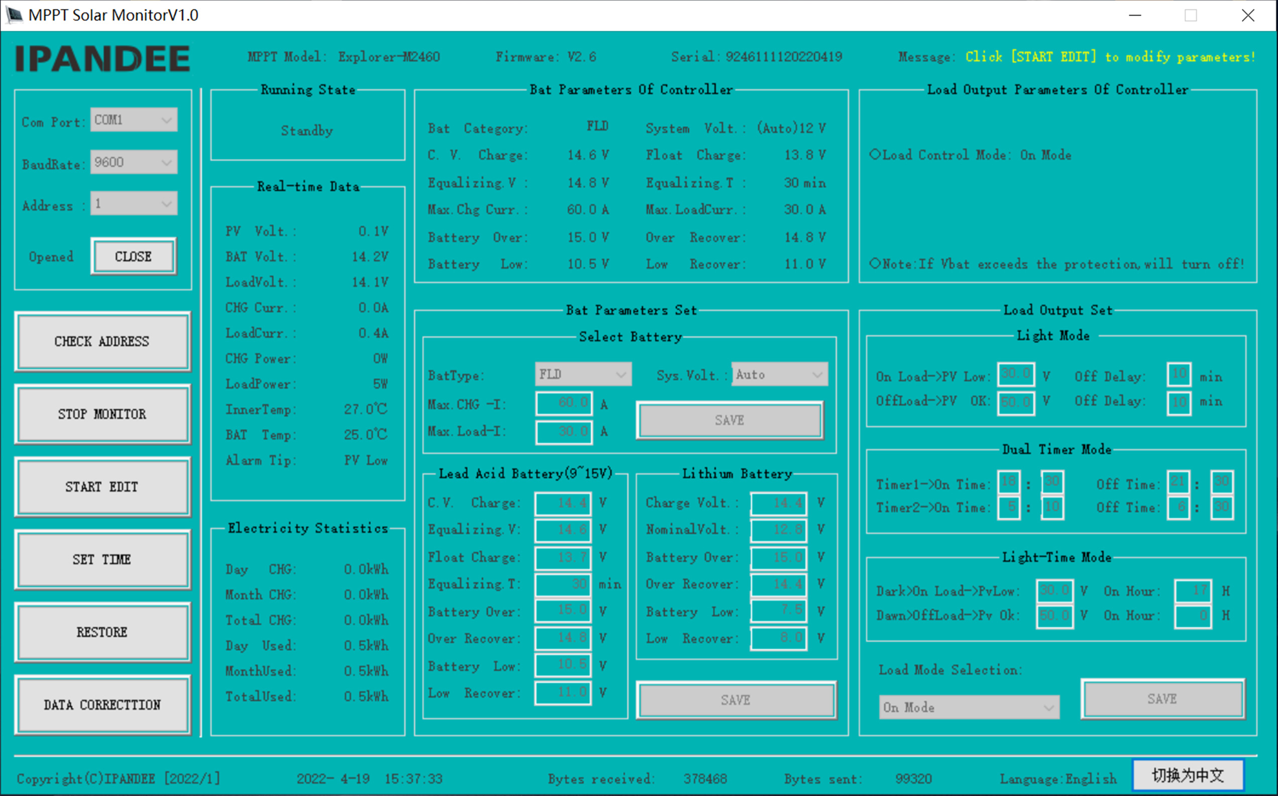 Display lading en ontladingsstatus, PV -spanning, laadspanning, laadstroom enz. En de bijbehorende parameter kan worden ingesteld.